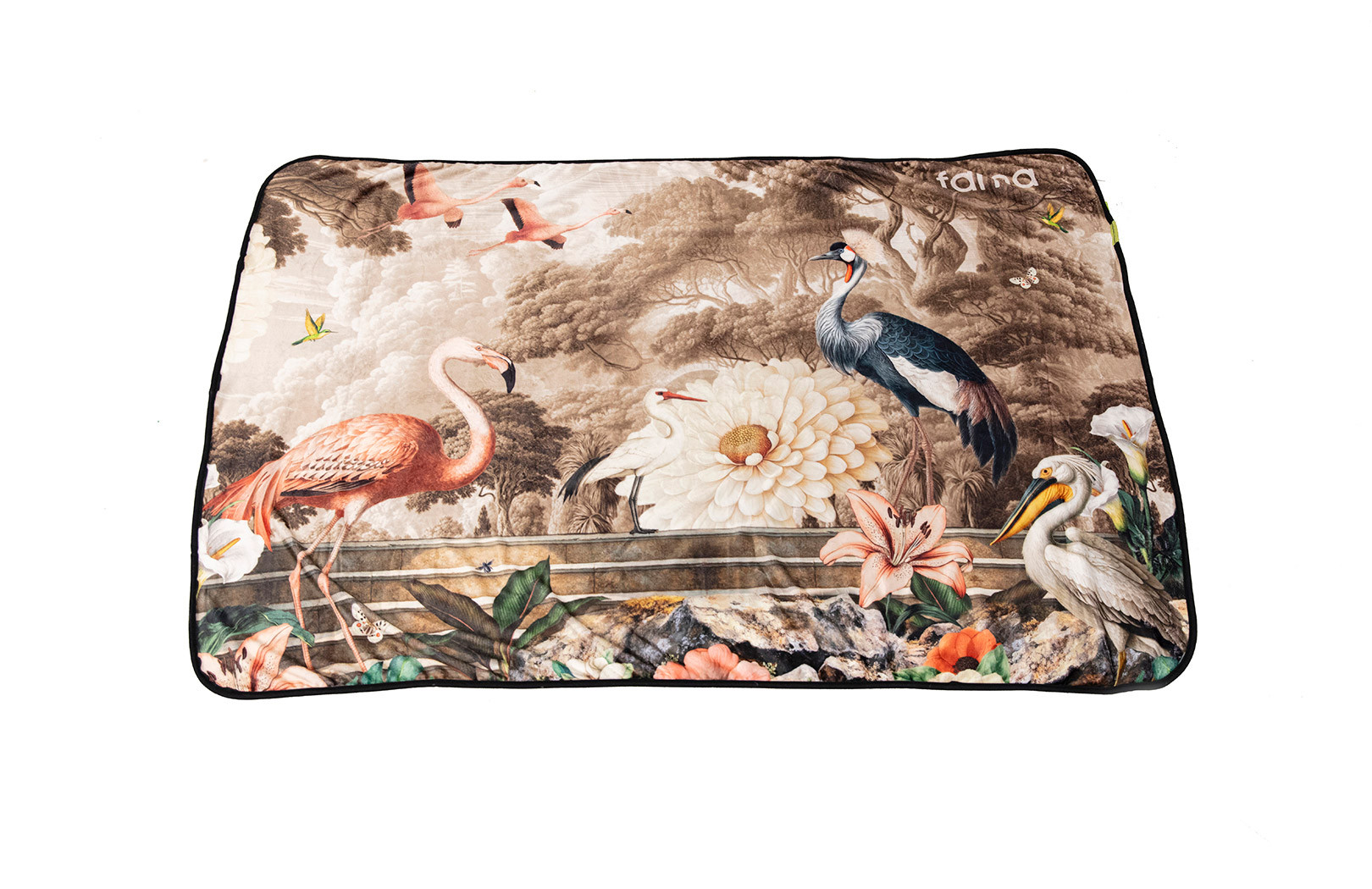En esta nueva colección de La Ligne 29 se representa un universo onírico y refinado, donde aves exóticas y naturaleza exuberante se inspiran en la pintura clásica para crear una escena llena de equilibrio y elegancia. Una composición rica en detalle que transmite serenidad y sofisticación.