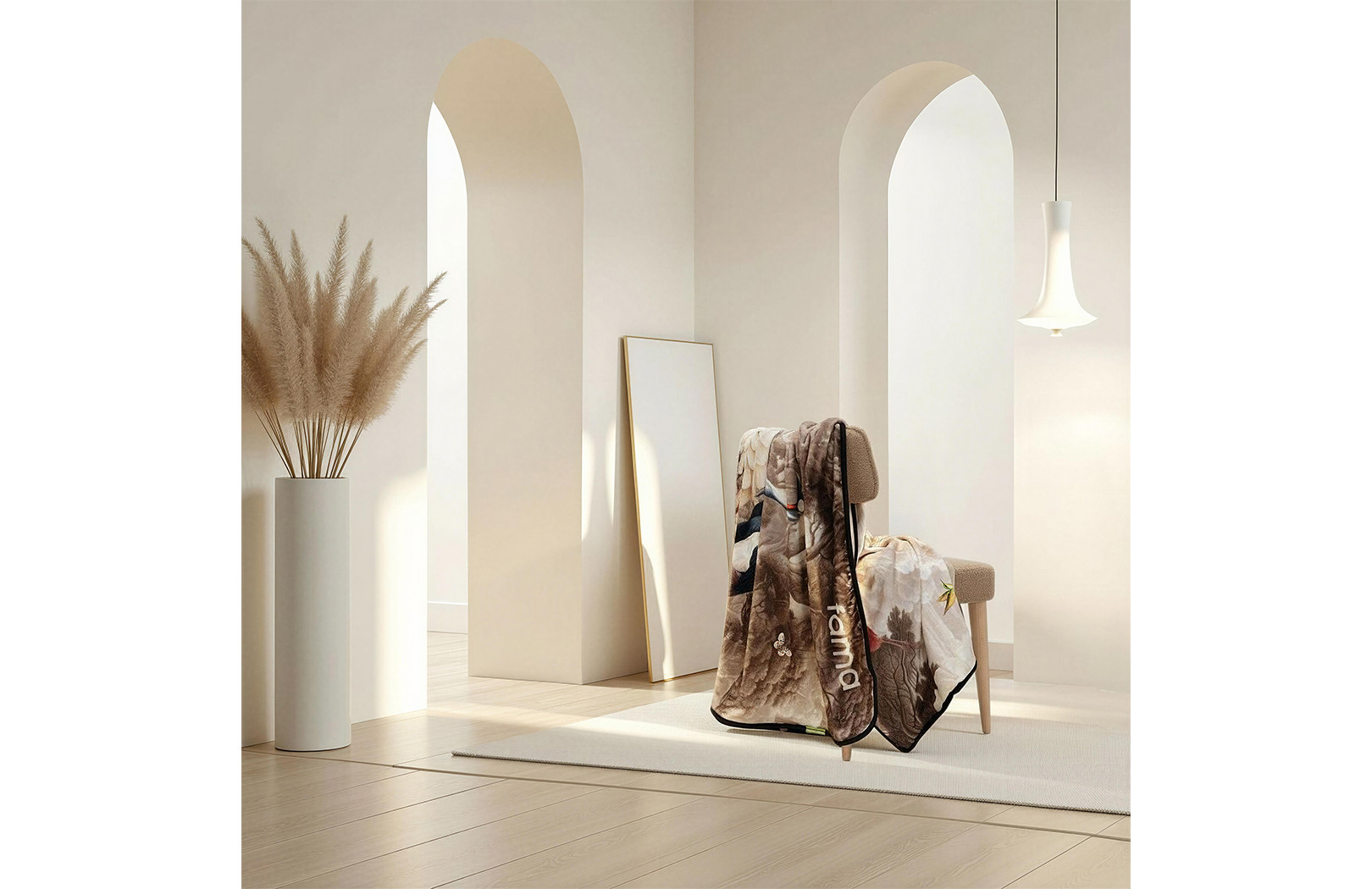 En esta nueva colección de La Ligne 29 se representa un universo onírico y refinado, donde aves exóticas y naturaleza exuberante se inspiran en la pintura clásica para crear una escena llena de equilibrio y elegancia. Una composición rica en detalle que transmite serenidad y sofisticación.